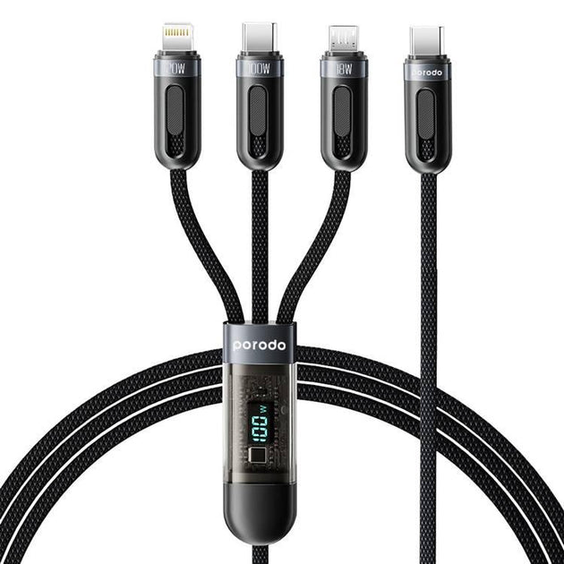 Porodo Multi-Connector USB-A Fast Charging Display Cable Lightning/Type-C/Micro USB 1.2M - Black