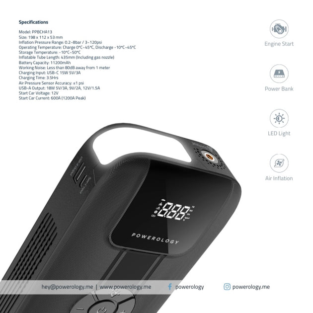 Blower, portable charger, emergency light and engine starter from POWEROLOGY