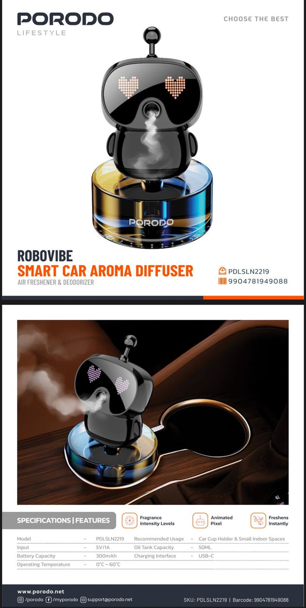 Porodo Robovabe Smart Car Air Freshener - with Moving Pixel Technology