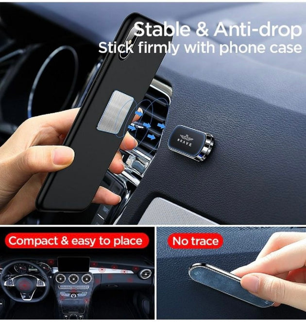 Magnetic stand to hold the phone on the car dashboard or the air conditioner blades from Brave