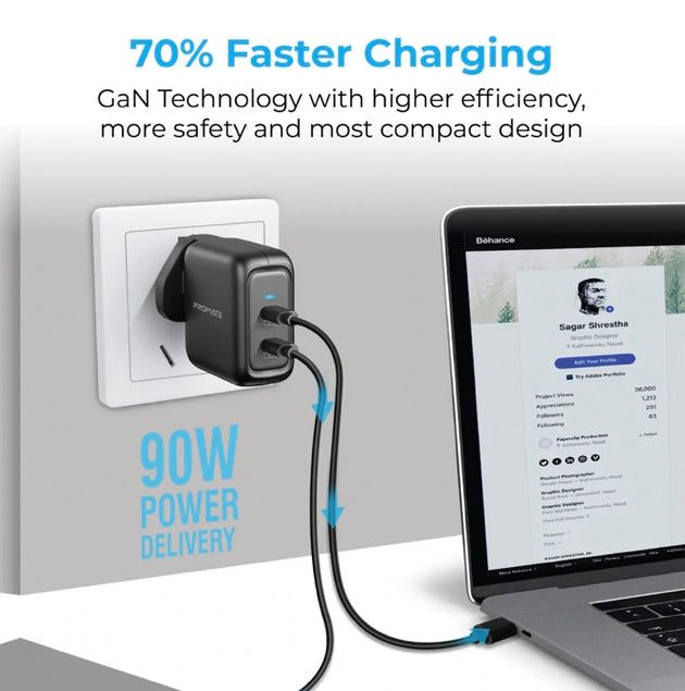 Fast charging wall charger and power bank with a capacity of 15,000 mAh with cable from Promate