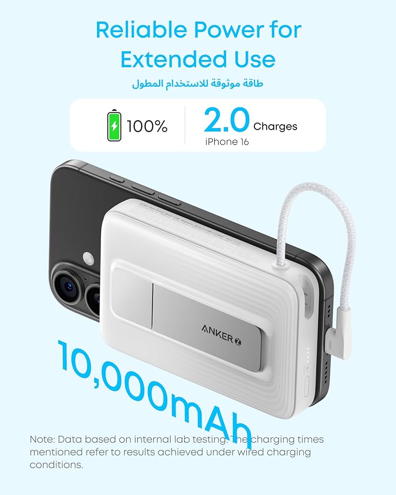 ✔️ Anker Zolo Power Bank (10000mAh, Magnetic, Built-in USB-C Cable)