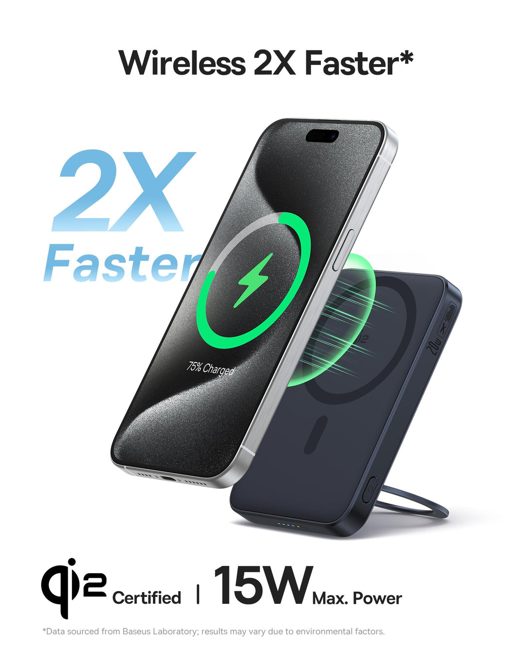Charge your iPhone 15 Pro from 0 to 35% in just 30 minutes — up to twice as fast as traditional chargers.