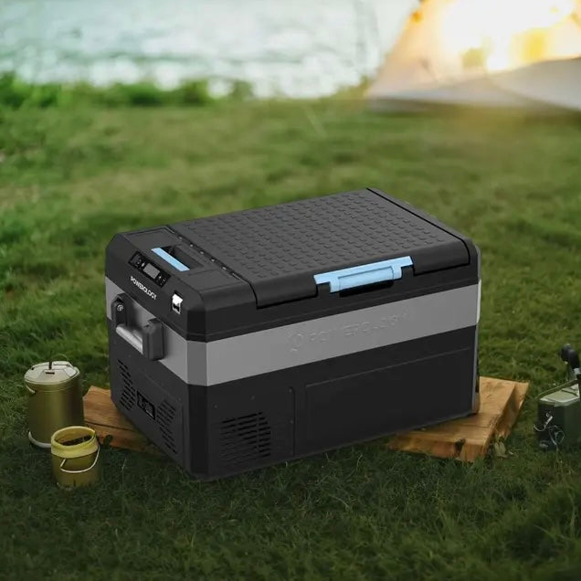 Powerology introduces the 55L Portable Refrigerator, a practical and easy-to-use cooler container to keep your food and drinks cool and fresh at all times. This refrigerator offers a battery capacity of up to 20800mAh, 60W of power, and the latest charging solutions such as Type-C charging ports and solar charging to ensure that your battery never runs out. The refrigerator is equipped with a DC compressor and inverter unit, providing cold storage, fast and deep cooling down to -22°C. With the app feature and Bluetooth connectivity, you can easily control everything and adjust the temperature from -22°C to +24°C. This refrigerator is ideal and practical for your outdoor trips and camping.