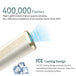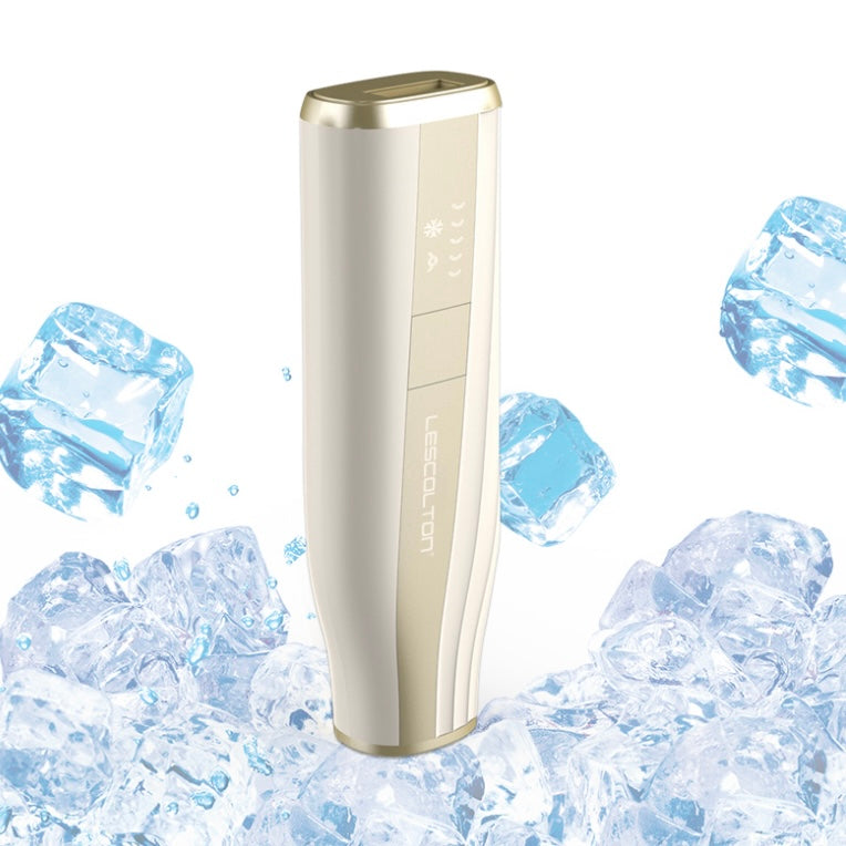 The device uses IPL technology to send intense pulses of light to the hair follicles, which contributes to slowing hair growth and reducing its density over time. An ice cooling function is included to reduce the feeling of heat caused by IPL and provide relief during treatment.