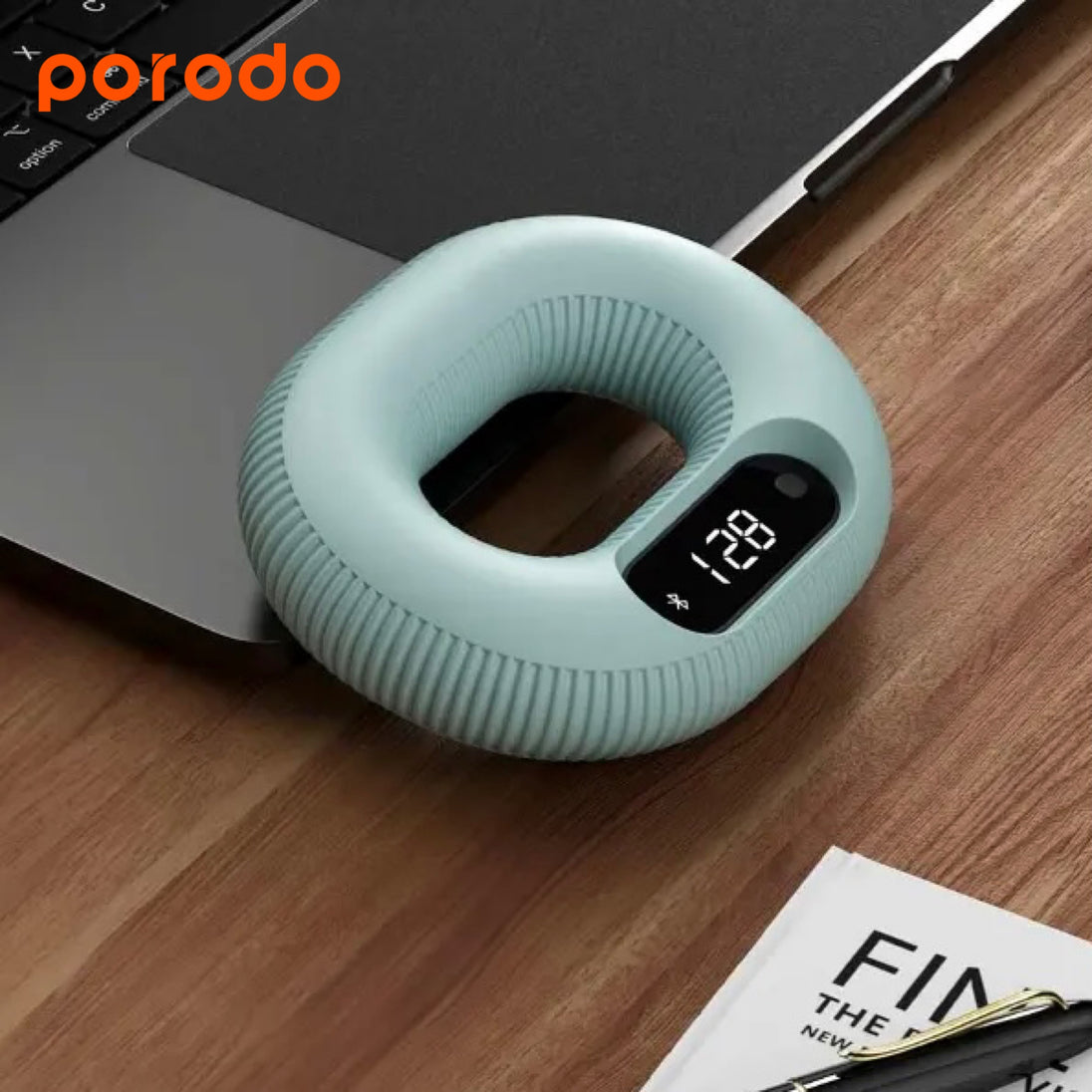 The Porodo Smart Strength Grip is a great device that helps in strengthening your hands. Works with games on the app, making stress and muscle building fun. You just need to plug it in for 1 hour, then it is ready to use for 5 hours. It has a screen that shows you how strong your grip is and how you perform in games. It's great for anyone who wants stronger hands for playing sports, playing music, or even opening jars with greater ease.