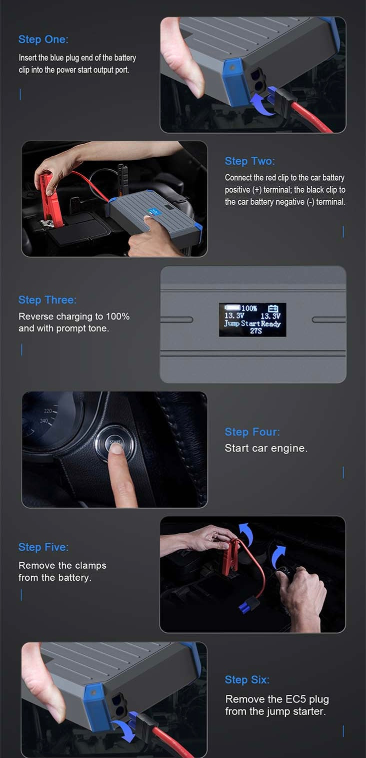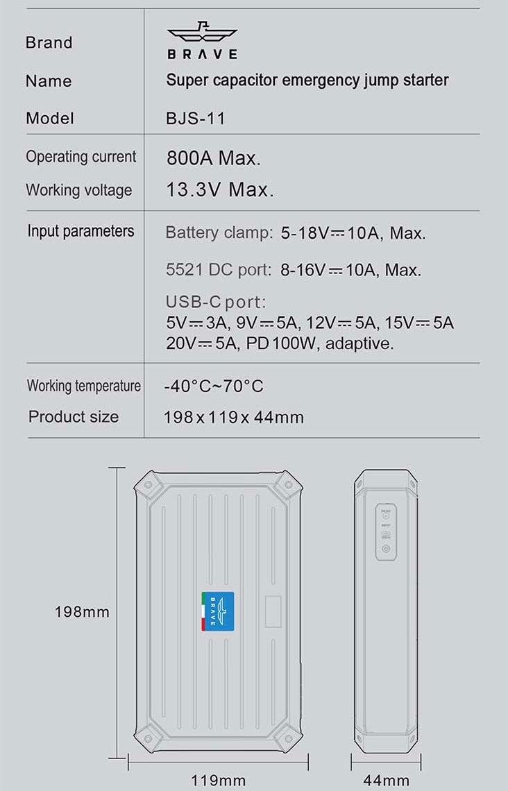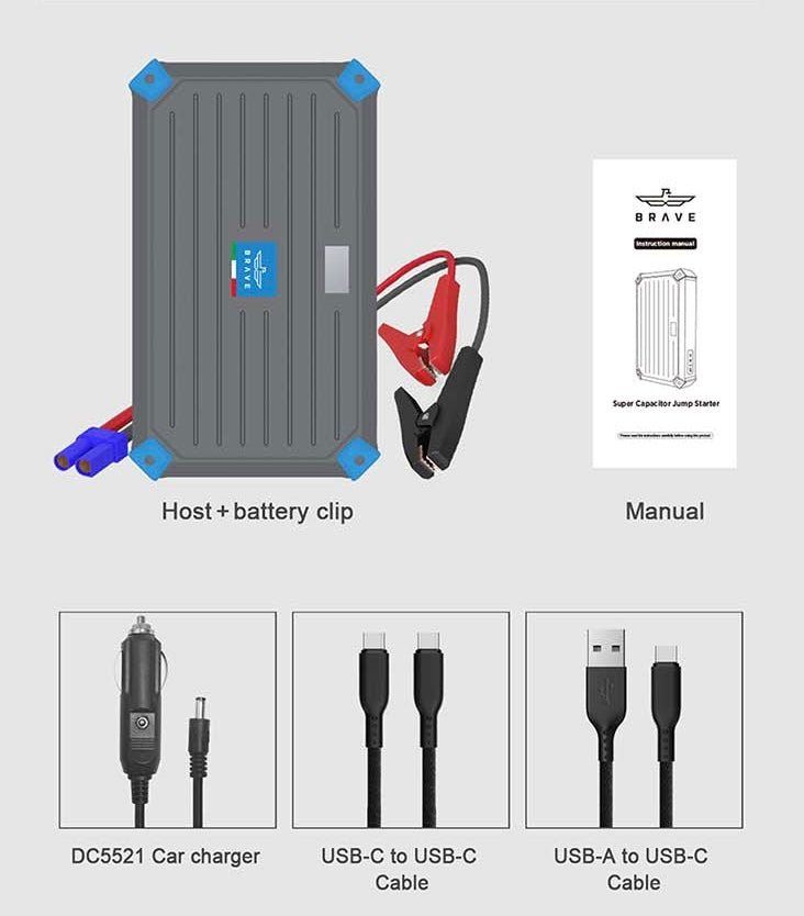 It is done shipping Brave BJS- 11 device road Connect it Source energy external for a while Temporal short, And it is done storage Energy in Capacitors . Once that It is done delivery The device With battery The car, It is done transfer Energy from Capacitors to battery The car To start Turn it on .