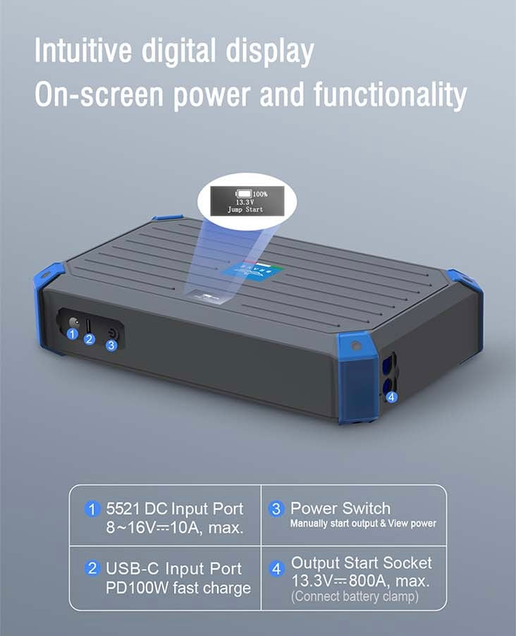 he device employment battery Used in Cases Emergency To start employment The car when Be battery Empty or Weak . Characterized. this The device With technology Super Capacitor, And it is technique Modern used Capacitors Instead from Batteries traditional To store Energy