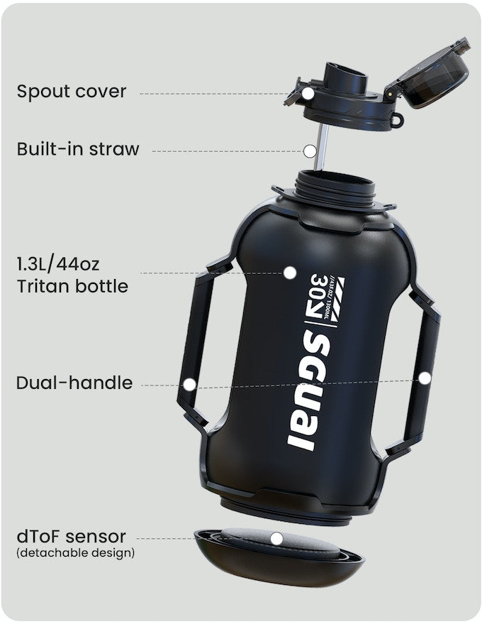 sgual smart bottle - an all-in-one smart water bottle that includes a water drink reminder, consumption tracker, and analyzer