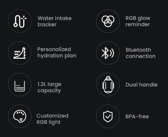 In addition, the smart bottle has a water consumption tracking and analysis feature, as it can record and monitor the amount of water drunk throughout the day. The user can view water consumption data via an accompanying application on a compatible mobile phone or tablet.