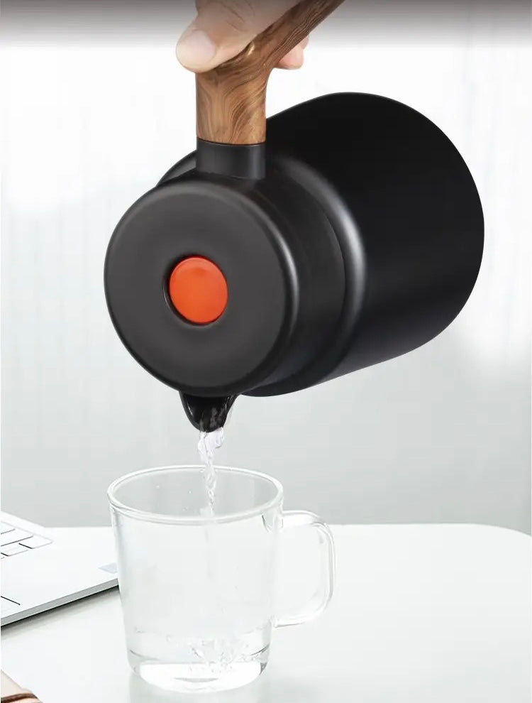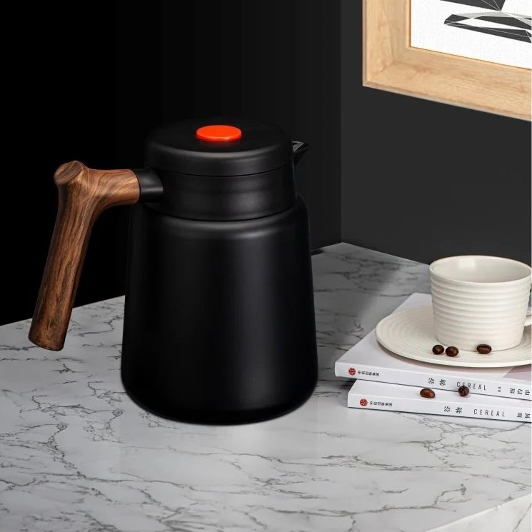 The mug features a sturdy design made of high-quality stainless steel, making it rust-resistant and durable for daily use. The handle features a stylish wooden design and is comfortable to hold, adding an aesthetic touch to the mug and making it easy to use.