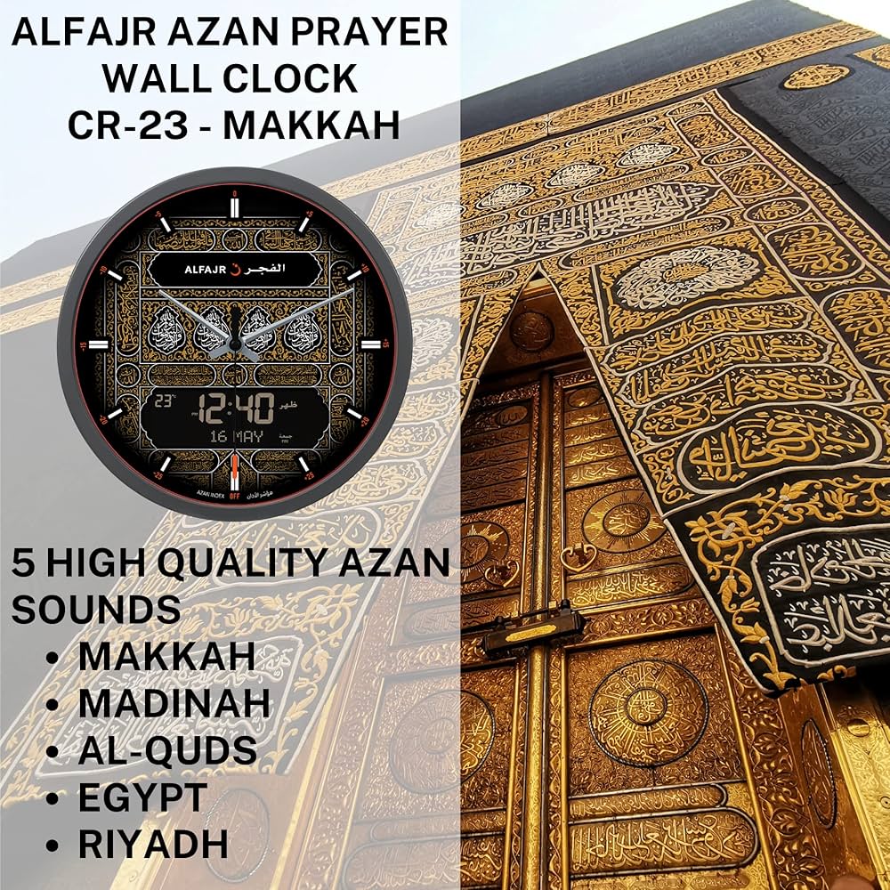 A high-quality azan clock that combines an elegant design with digital and analog displays. It features an automatic azan system for all prayers and a high-quality azan sound. It is suitable for use in homes, offices, classrooms, and mosques.