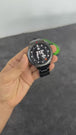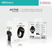 Black and red smartwatch. Features a 1.43-inch AMOLED display, dual-band GPS, and is water resistant up to 50 meters. The packaging highlights the specs and accessories, including an additional silicone strap
