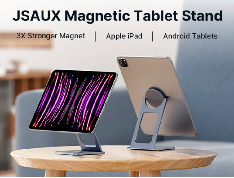 JSAUX Tablet Magnetic Stand, Premium Alloy Pad Magnetic Stand, Magnetic Tablet Holder Compatible with iPad Pro/Air/Mini, iPhone 15 Pro Max /15 Plus, Samsung Galaxy Tablets (Come with Magnetic Ring)