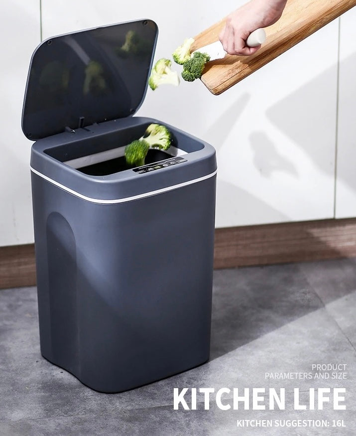 4 seconds after leaving the trash can, the trash can closes automatically without touching or pressing; It will open for a long time as long as the hand does not leave