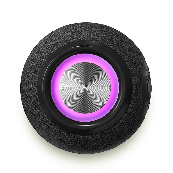 A wireless bluetooth speaker with RGB lighting that delivers powerful and deep bass in the low frequencies