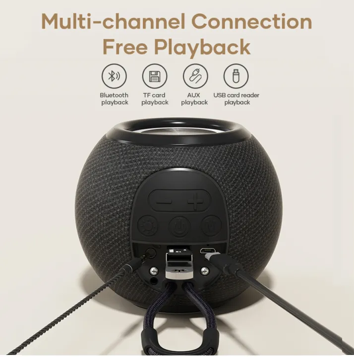 The speaker also comes with RGB lighting, which adds a visual element to your listening experience. These lights can provide different colorful effects and patterns that go along with the music, creating an immersive and fun atmosphere.