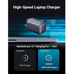 Introducing the UGREEN 100W GaN Fast Charger, the ultimate high-speed charging solution for laptops, tablets, and smartphones, all packed into a sleek, compact design.