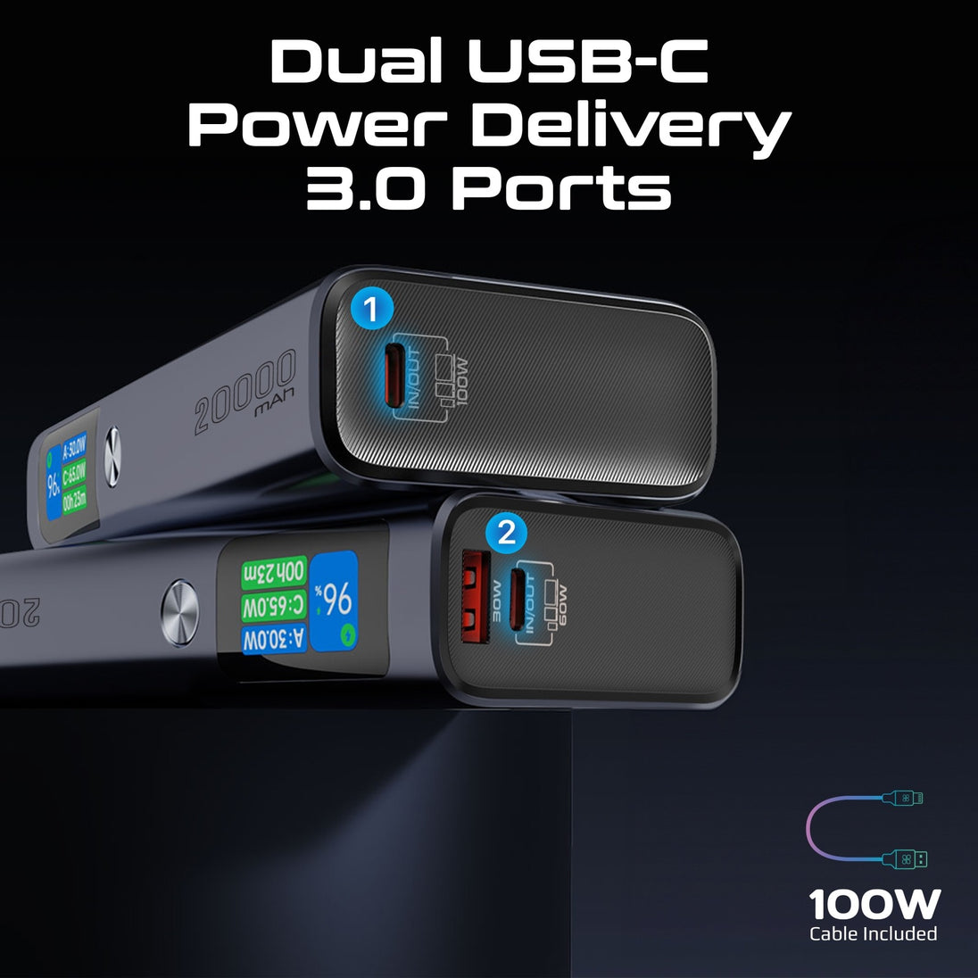 Power bank with a capacity of 20,000 mAh, 130 watts, with a screen to display the charging percentage from Promate