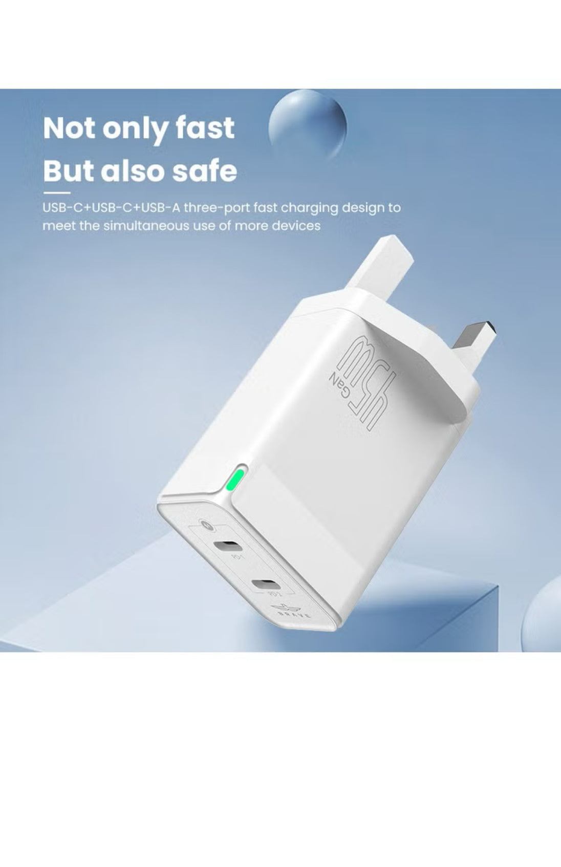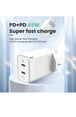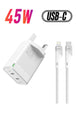 45W PD GaN Charger with 2 USB-C Ports + USB-C to Lightning Cable – Compatible with iPhone and Samsung – UK Plug