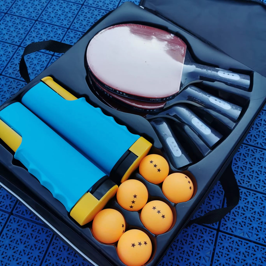 Enjoy a game of table tennis anytime and anywhere with this complete set , which includes 4 high-quality rackets and 6 durable balls . Ideal for home use, training, or recreational play with friends and family.