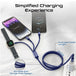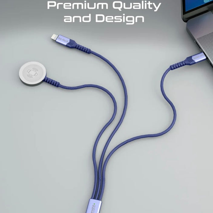 Introducing iCharge-Trio, your all-in-one charging solution. With a versatile USB-C input and three charging outputs, including a Lightning connector, an Apple Watch charger, and a USB-C connector for your Apple devices and other compatible devices. Simultaneous charging of multiple devices becomes easy. Enjoy 60W fast charging with Power Delivery, while enjoying 480Mbps data transfer. The braided fabric-covered cable ensures long life and tangle-free use, while its generous length of 150cm provides flexibility. Say goodbye to cable clutter with our sleek design that simplifies your charging experience. Elevate your style and keep your devices charged with the iCharge-Trio, where convenience meets innovation.
