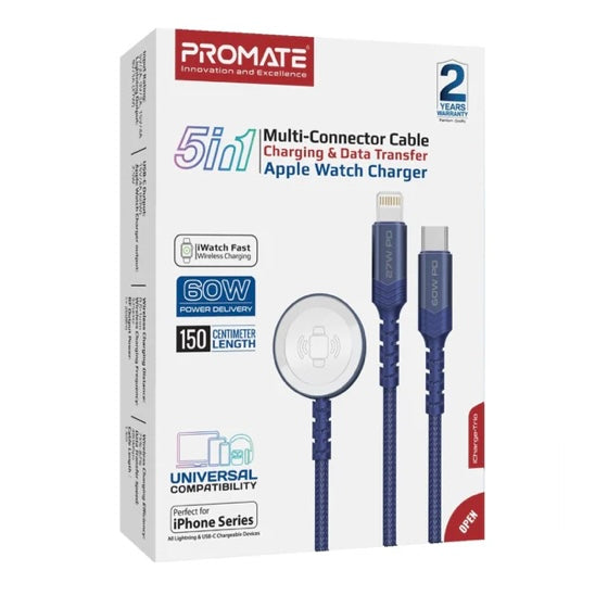 Promate 5-in-1 multi-connect cable for charging and data transfer with Apple Watch charger