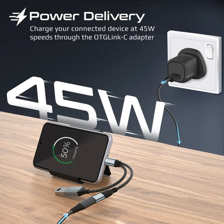• Power Delivery: Charge your connected device at 45W through the OTGLink-C adapter.