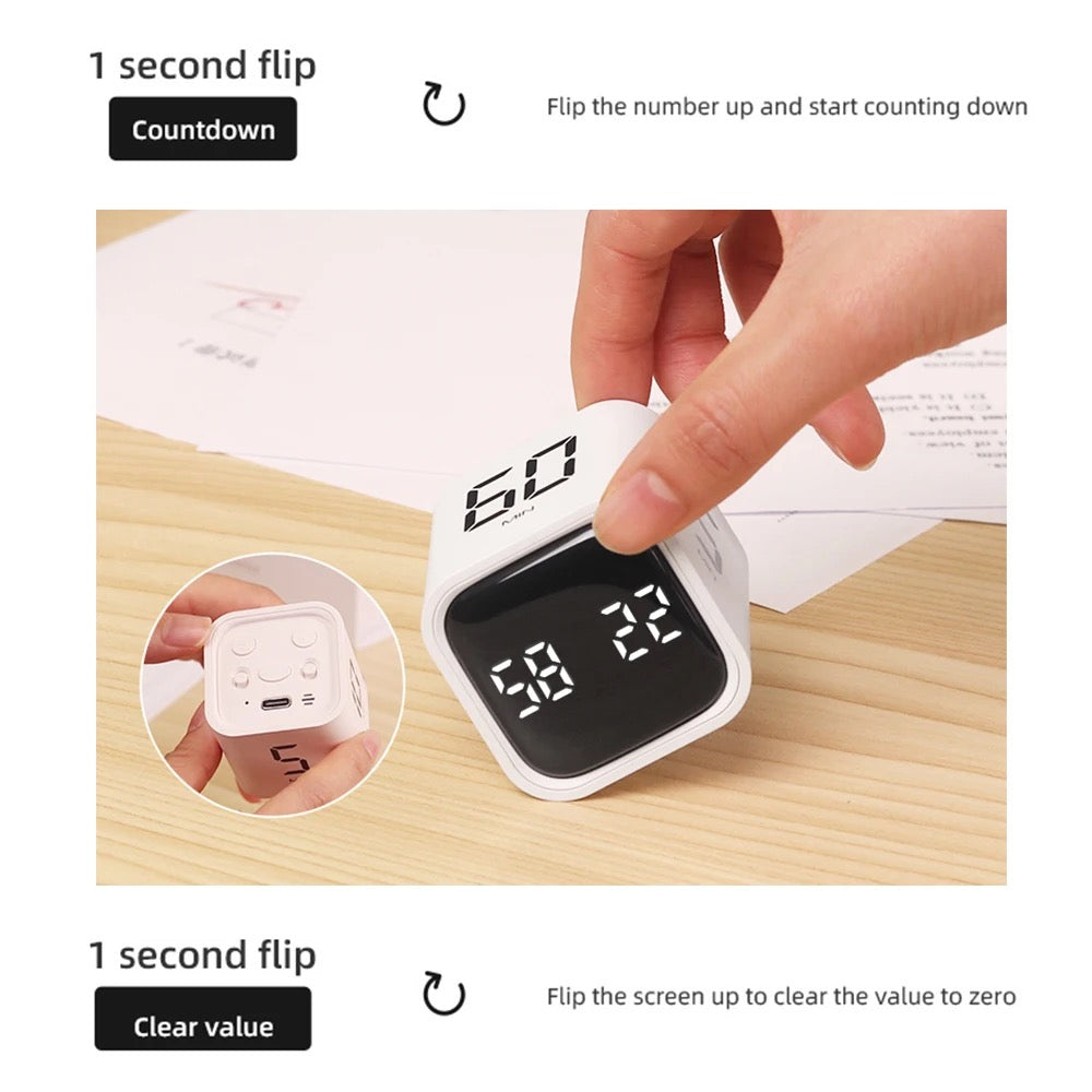 Portable Gravity Sensor Rotating Cube Timer with Count Up and Down Function, 5/10/30/60 Minutes Timer and Customizable with LED Display