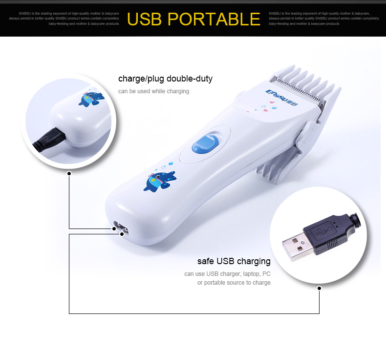 Enssu Kids Hair Trimmer, Professional Cordless Quiet Hair Clipper For Baby Children Infant Haircut With Waterproof Ultra Slient