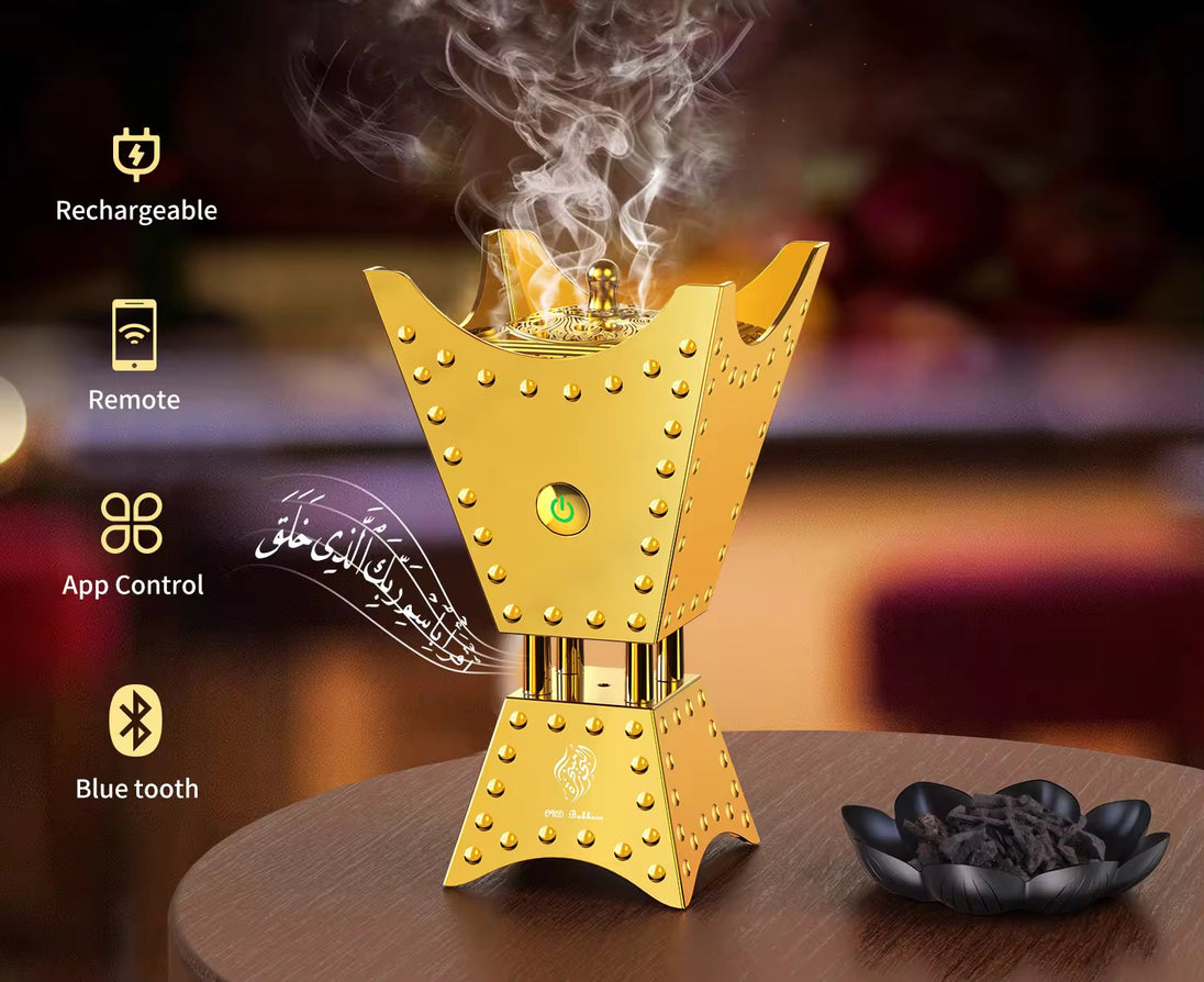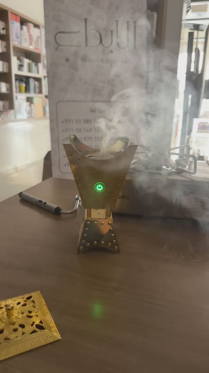 Add a touch of luxury and authenticity to your home, hotel or restaurant decor with this luxurious electric incense burner made of golden metal . It features an elegant Islamic design that adds beauty and spirituality to any place. It provides a safe and fast incense experience thanks to its convenient electric operation.