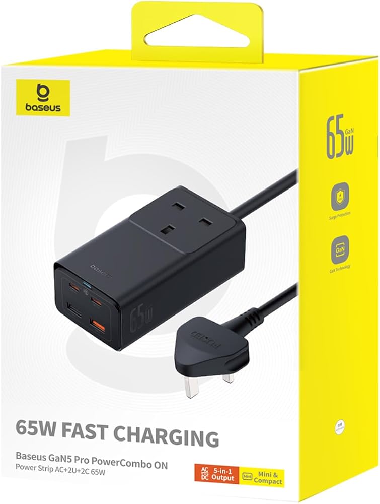 The Baseus 65W Power Strip is the all-in-one solution for all your charging needs—power, safety, and style in one design. Perfect for travel, work, or home.