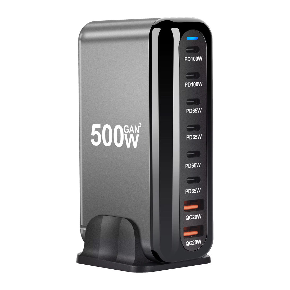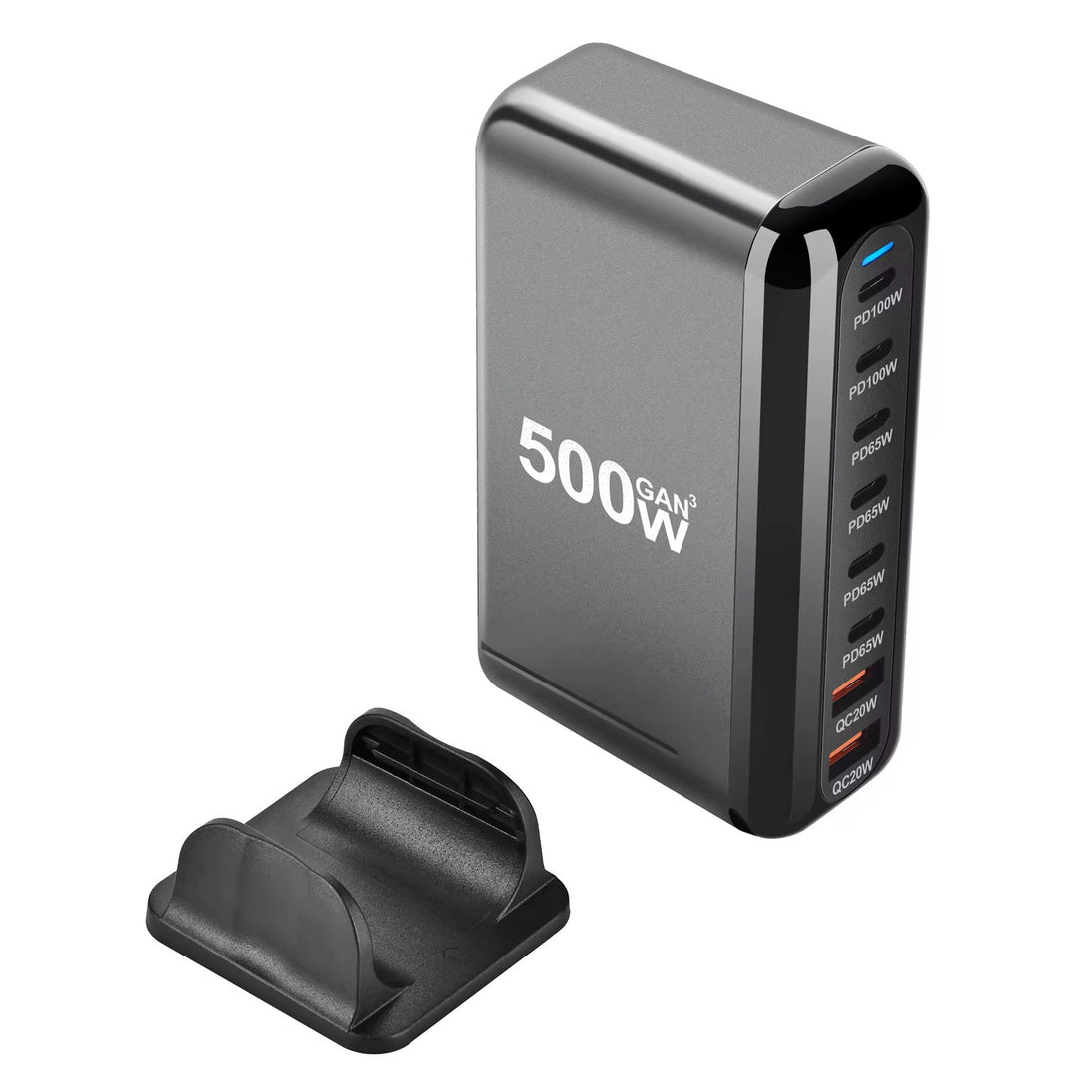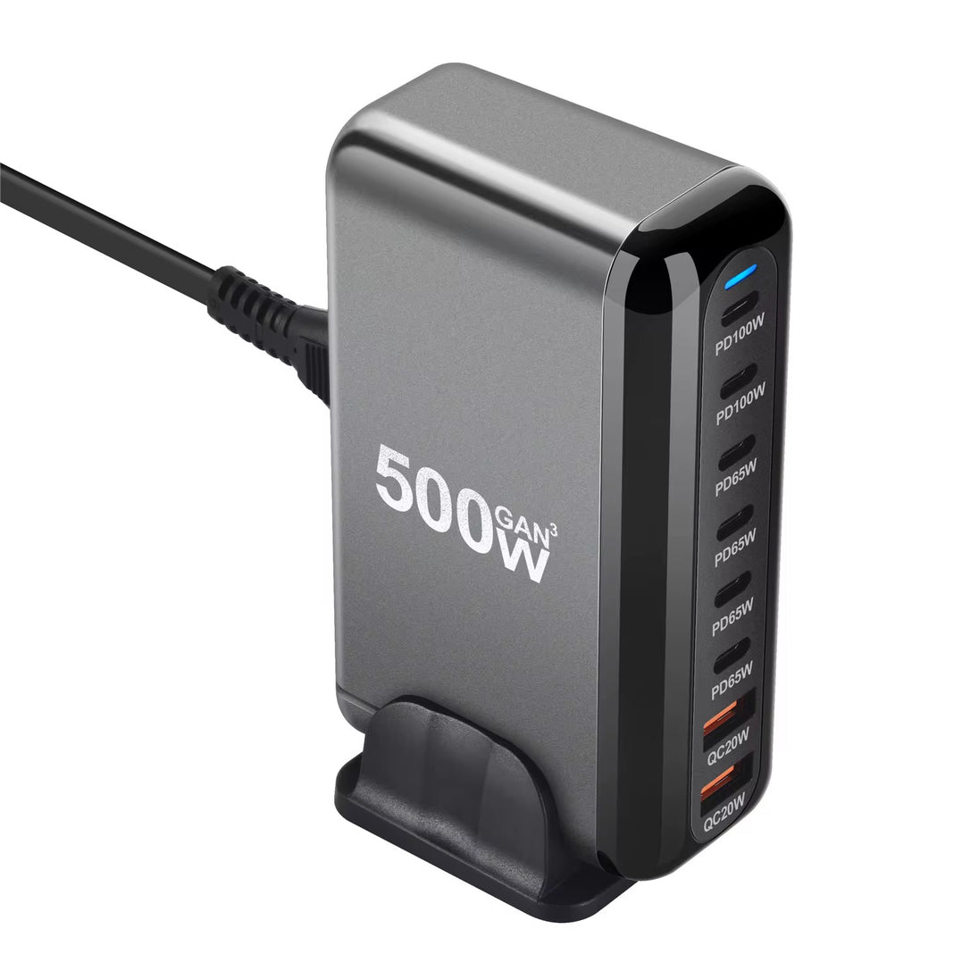 500W GaN Charging Station – 8 PD Ports for Fast Charging, Ultra-Compact and Portable Design