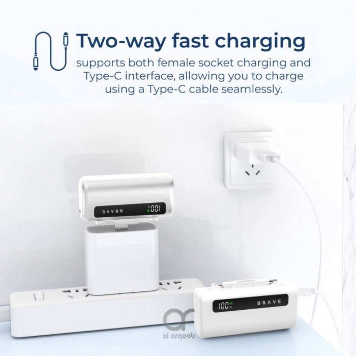 Brave 4-in-1 Portable Power Station with 22.5W USB-C Fast Charging, Type-C and Lightning Ports, 5000mAh Each