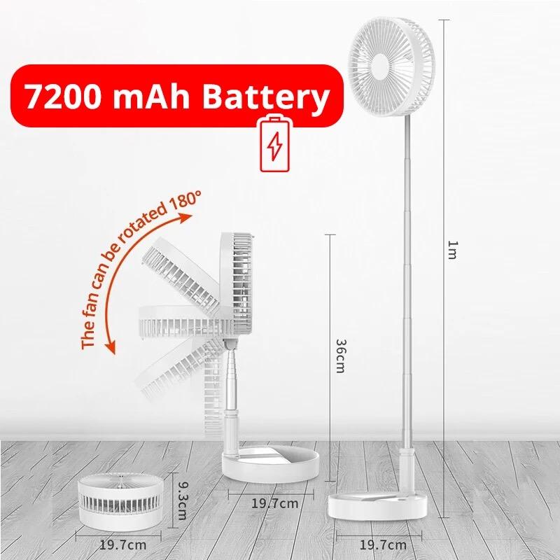 Product name : Retractable electric fan Product number : AH06 Main material : Aluminum alloy & ABC plastic Battery capacity : 7200 mAh Charging voltage : 5V/2A Working wind speed : 2.3~4.0 m/s Product gross weight : 1.06kg Operating hour : 5~ 24 hours Charging time: 4.5 hours Noise decibel: 30~40 dB Package dimensions: 230*105*230 mm