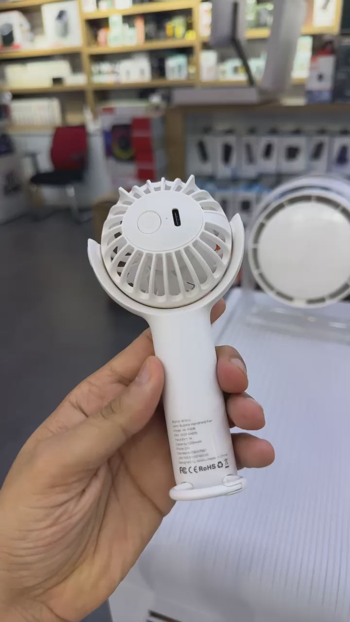WiWU Bubble Wi-FS08 Handheld Fan, Mini Portable Fan, 1200mAh Rechargeable Fan, USB Rechargeable Fan, Mini Desktop Personal Fan with 3 Speeds, Strong Airflow, Ultra Quiet, Cute Design Fits in Pocket.