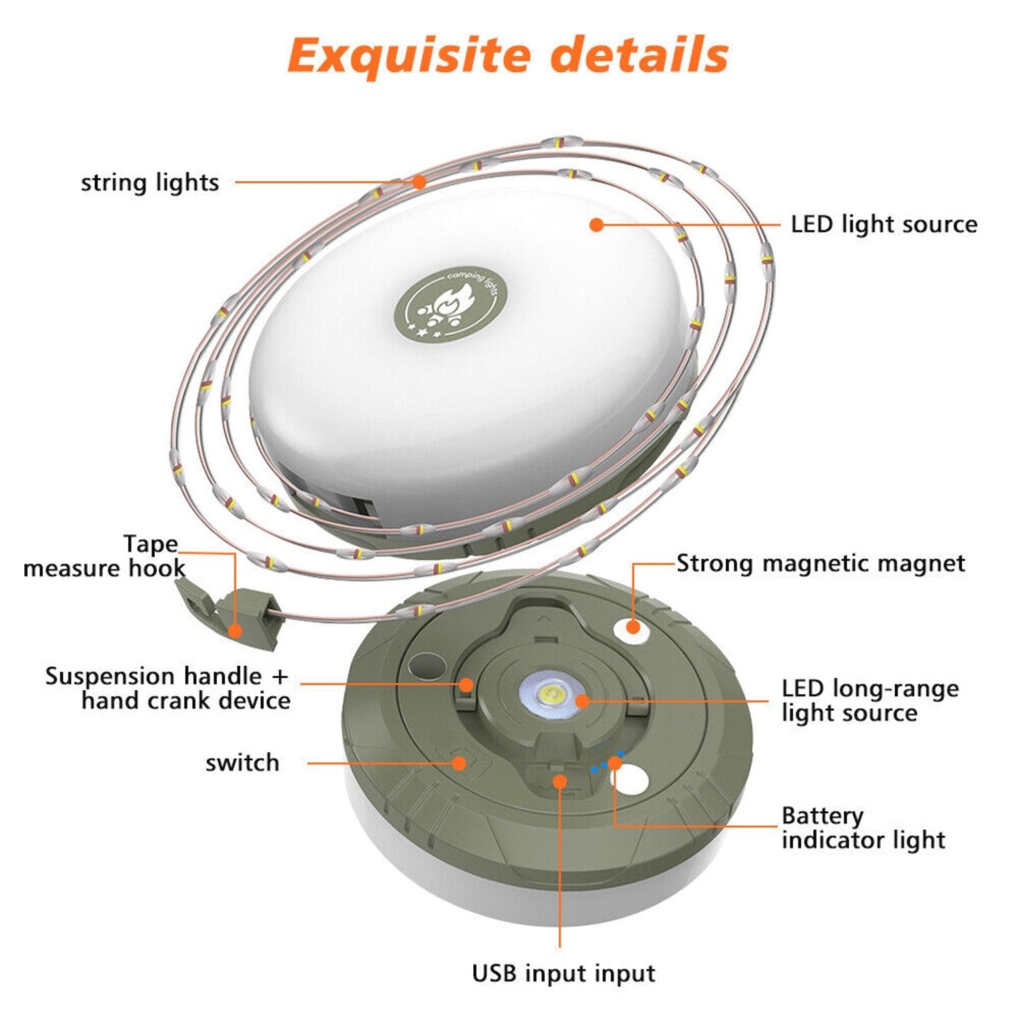 Compact and easy to store, quickly turn the handle and the string lights can be restored by hand device in just about 30 seconds. Camping String Lights Innovative design ensures smooth storage and easy packing.