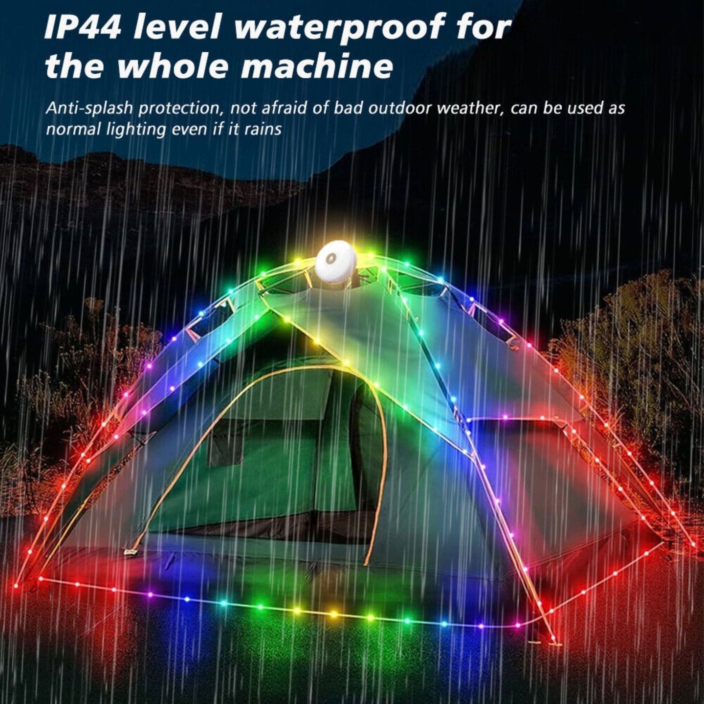 Multi-mode camping lights provide 8 lighting modes - warm lantern, RGB alternate flash, RGB breathing, lantern + warm string light, strong lantern, long-distance high beam, long-distance medium beam, SOS flash. It can be adjusted according to preference to meet different lighting needs. Perfect for camping tents, family gatherings and other occasions.