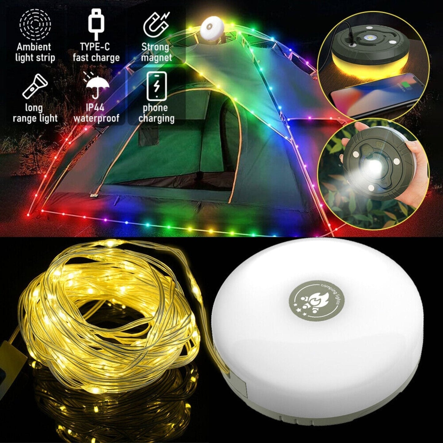 Camping Lights String Camping Lantern, All-in-one camping equipment that seamlessly combines camping lantern and string light. The 32.8ft long outdoor string light can illuminate your tent, emitting a warm and soft glow, like scattered stars, filling your tent. The whole environment with warmth and romance. Great camping essentials in summer vacation.