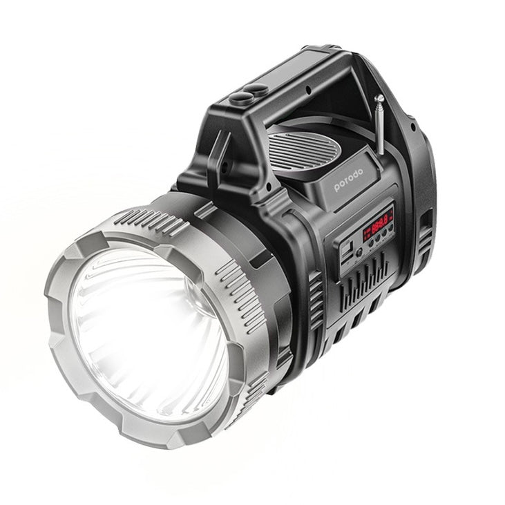 The Porodo Lifestyle Outdoor 10W 3-in-1 Flashlight is a versatile tool for outdoor enthusiasts. This powerful device is powered by a powerful 8000mAh battery and also serves as a convenient mobile phone charger for on-the-go use. It also has a built-in FM radio function to keep you entertained and listening to the news, and a Bluetooth speaker feature to play your favorite music or podcasts from any Bluetooth-enabled device. For endless audio entertainment, you can also play your favorite songs directly from a USB flash drive or microSD card. For safety, the flashlight includes an SOS critical alert light. Bright LED light illuminates your path, making activities at night safer and easier. Don't let darkness or silence spoil your adventure. Pick up the Porodo Lifestyle Flashlight and Outdoor Speaker and step into the light with superior sound.