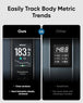 • Comprehensive tracking of 16 health metrics: such as body fat percentage, heart rate, BMI, and more.