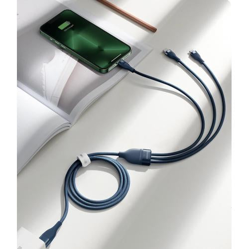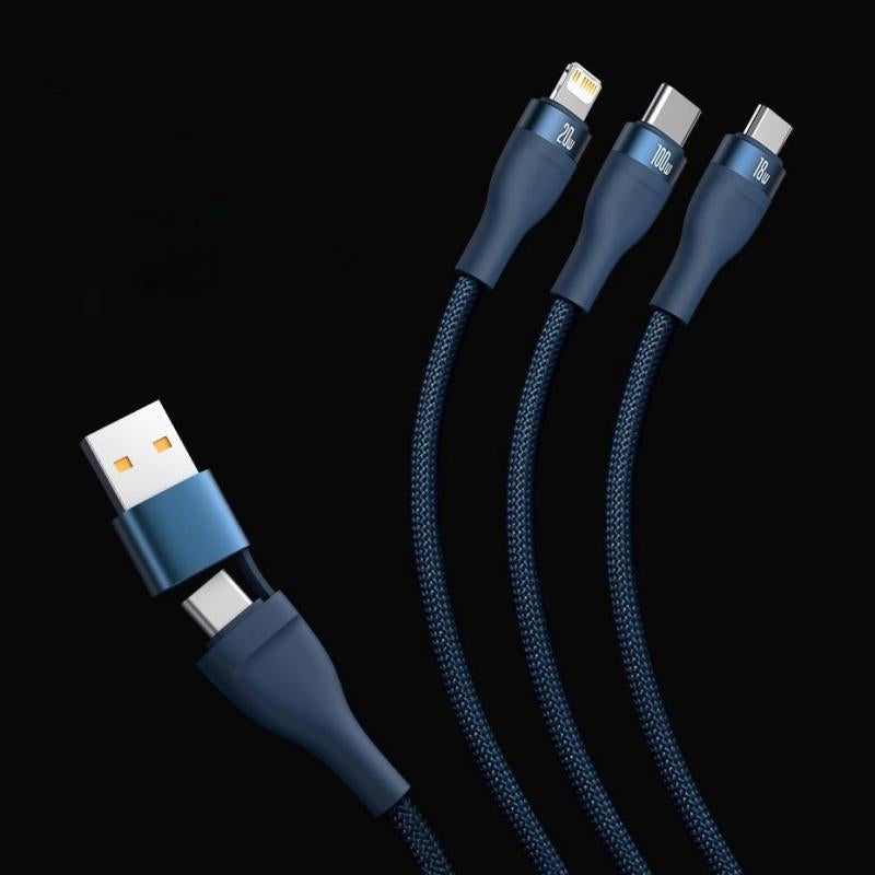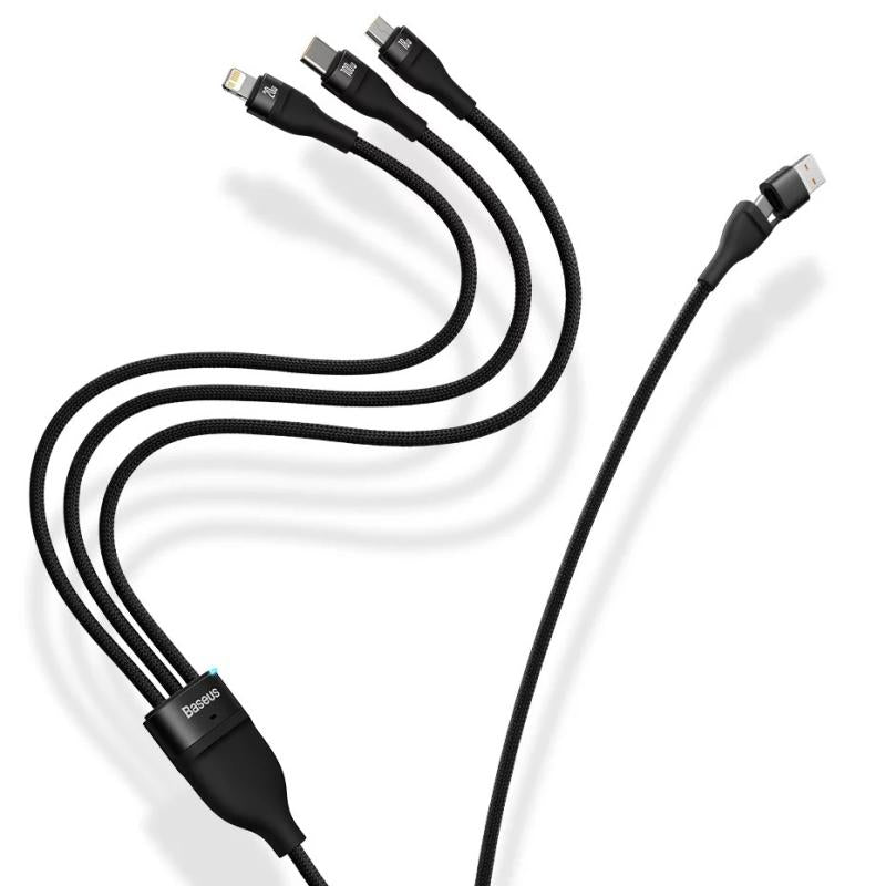 Baseus Flash Series Two for Three Data Charging Cable is a multi-functional charging cable designed to meet the needs of all your devices. With its unique design that combines two USB ports, a micro USB port, and a Type-C port, you can charge and sync a variety of devices with ease.