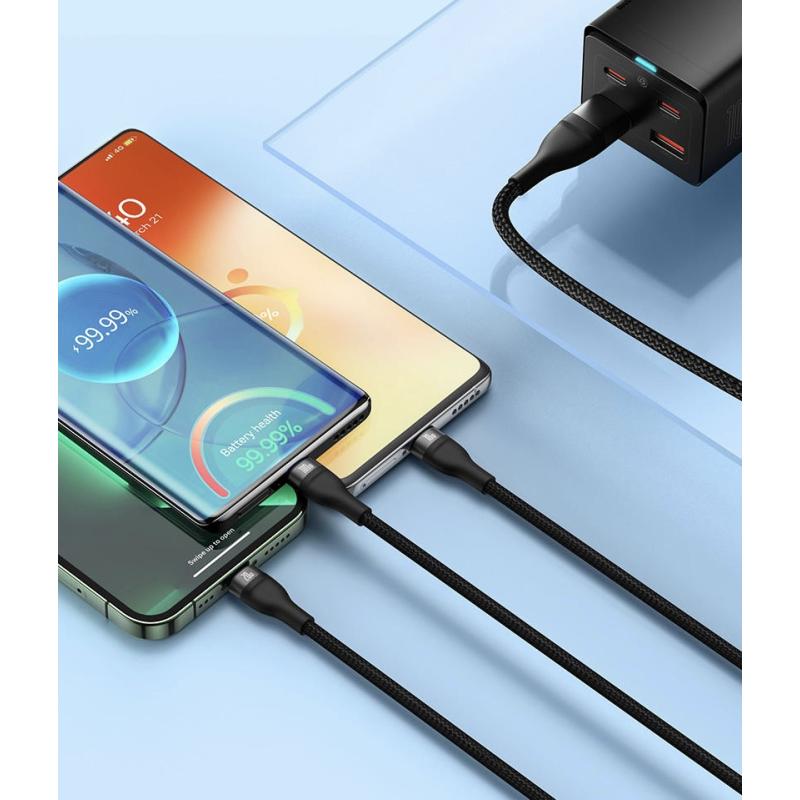 With its high-quality build materials and durable design, the Baseus Flash Series Two for Three Data Charging Cable is an excellent choice for keeping your devices charged safely and efficiently. Enjoy charging flexibility and convenience with this versatile cable.