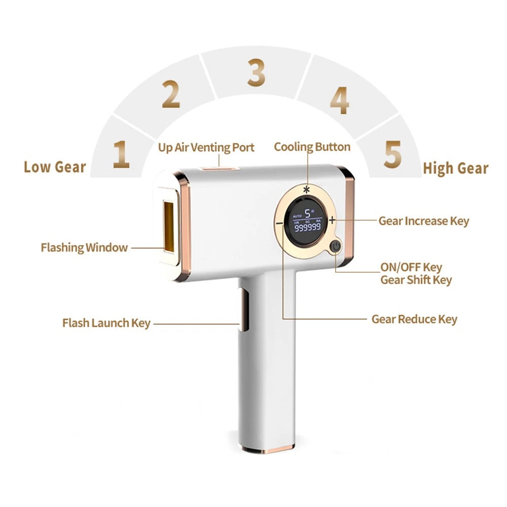 This is a cold IPL hair removal device. The device contains 999,999 flashes to provide an effective and permanent hair removal treatment. The device is painless, which makes it the perfect choice for women who are looking for long-term hair removal solutions. This device works as a Photoepilator, and is used as a permanent and comfortable hair removal tool.