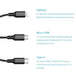 - 3-in-1 cable supports fast charging for a variety of devices, including Micro-USB, USB-C, and Lightning.