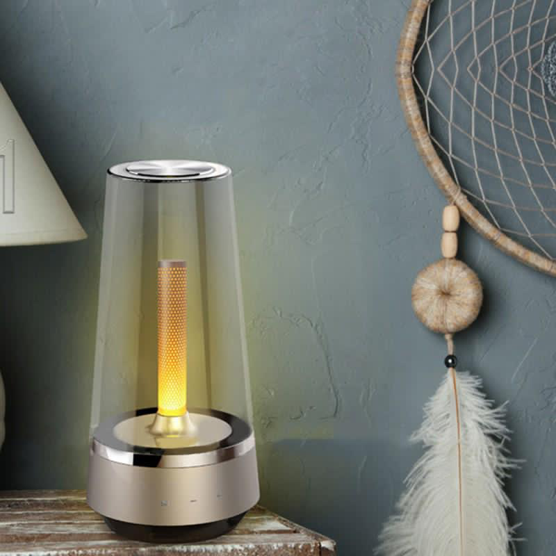 Distinctive atmosphere lamp with cool candle light and bluetooth speaker. New modern design lamps make perfect holiday gifts, innovative and provide night light.