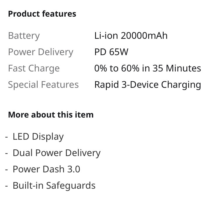 - USB-A and USB-C ports for charging different devices simultaneously.