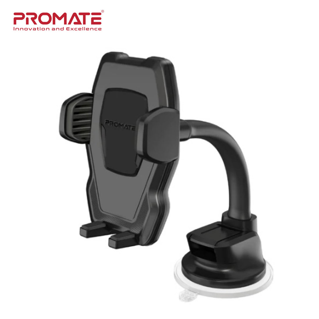 Promate Car Phone Holder is designed to provide absolute stability and no deflection while driving for a safe and comfortable driving experience. It features a 360-degree base to provide multiple viewing angles, with a non-slip holder to secure the phone's stable position. It comes with silicone pads to prevent scratches and drops, while maintaining uninterrupted access to ports and charging. Installs easily using suction cups, with one-handed operation for comfort and ease. Compatible with most smartphones and GPS devices of various brands, including iPhone, Samsung Galaxy, Huawei, LG, HTC, Nokia, OnePlus, Google Pixel, Lenovo, Asus, and GPS devices such as Garmin and TomTom.