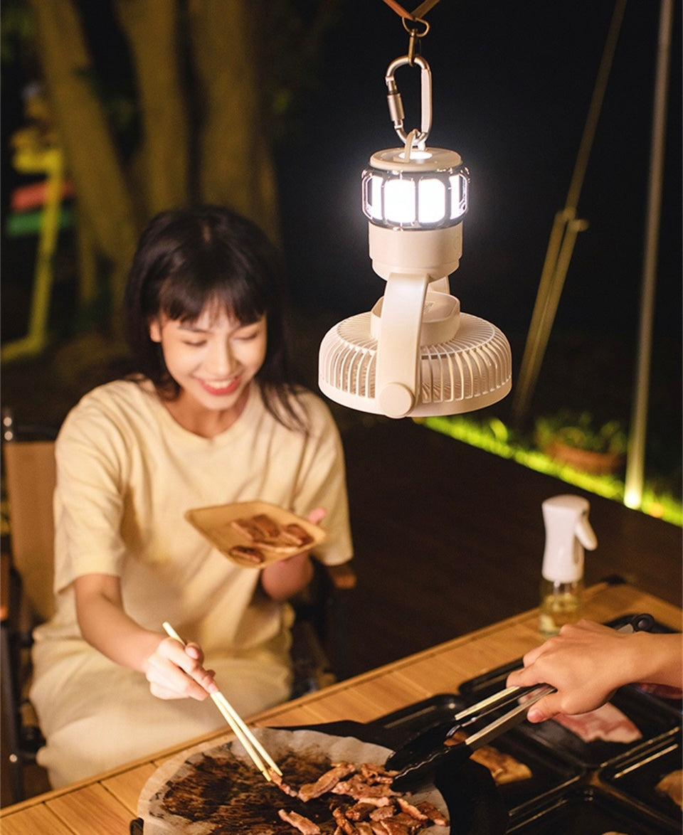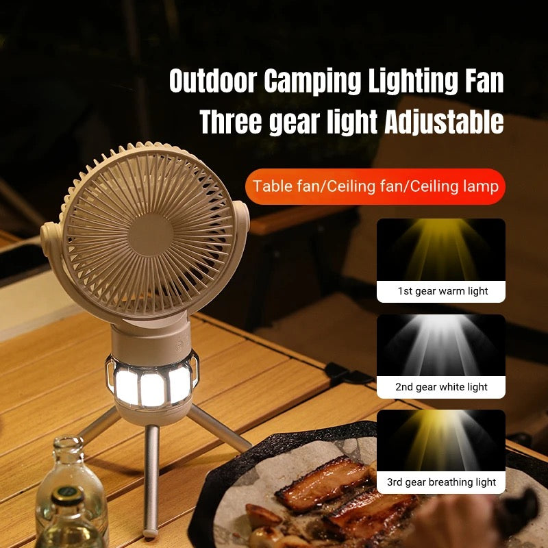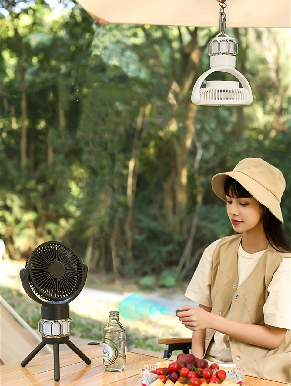 Portable Electric Fan and Camping Light with Remote Control Powered by 10000mAh Battery