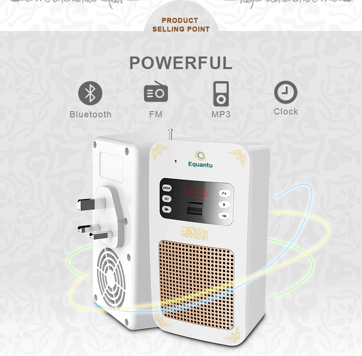 The speaker features a portable and practical design, allowing you to easily carry it around places and use it at travel, home and work. It also features an easy-to-use interface and simple control buttons to move between surahs and recitations easily.